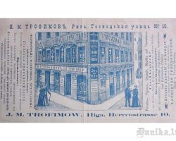 1904 gads. Rīgas tirdzniecības firmas Adolph Weterrich reklāmas paziņojums ar mājas Schwim (tagad Peldu) ielā attēlu, kurā bija veikals, birojs un noliktavas. Uzņēmums tirgoja vannas piederumus, krāsas, ziepes un smaržas.